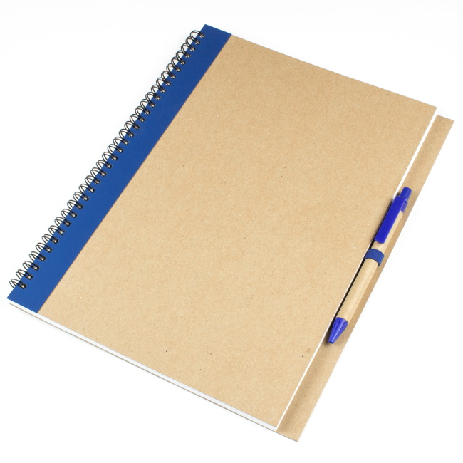 Блокнот A4 с ЭКО ручкой с полосой в разных цветах. Цвет полосы на блокноте и цвет пластиковых элементов эко ручки совпадают, создавая таким образом комплект. Возможно нанесение изображения методом УФ-печать или трафаретной печати.