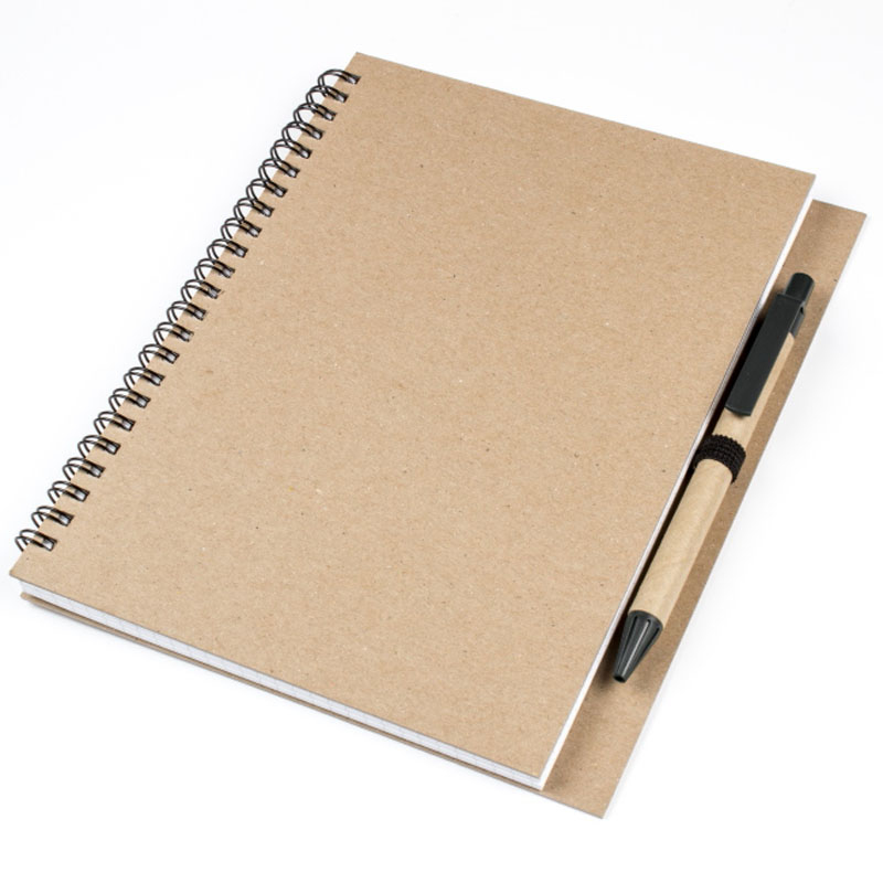 Блокнот A5 с ЭКО ручкой. Самый популярный формат для выставок, конференция и работы. Обложка изготовлена из картона, скреплена пружиной. Внутренний блок из белой бумаги в клетку. Набор содержит эко ручку. Нанесение изображения возможно методом ультрафиолетовой печати или трафаретной печати. Также возможна печать на ручке.