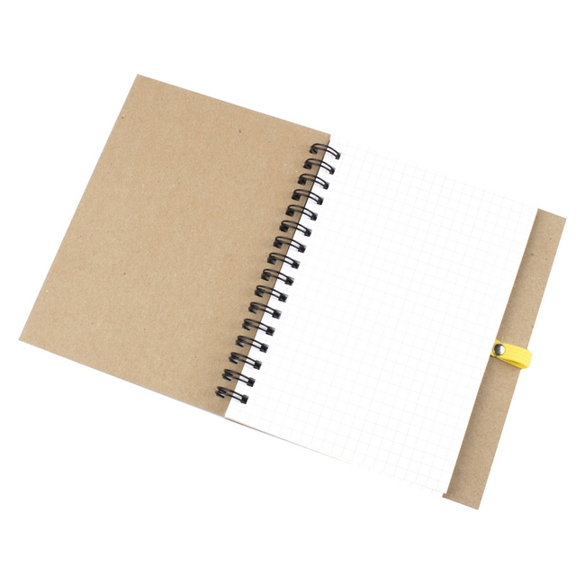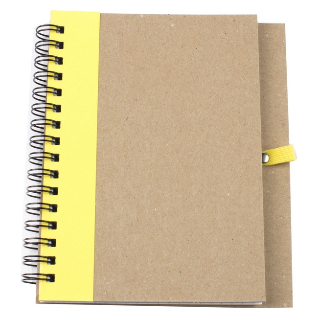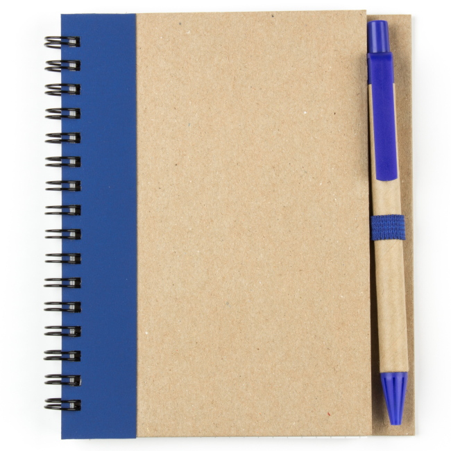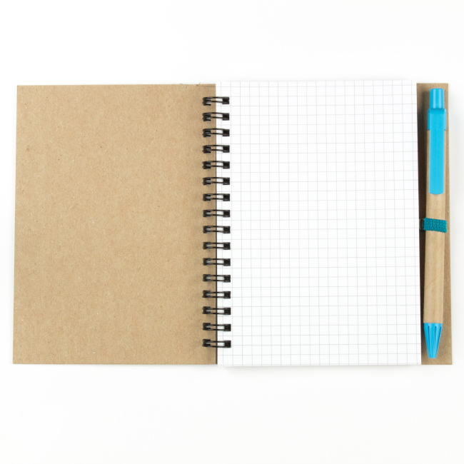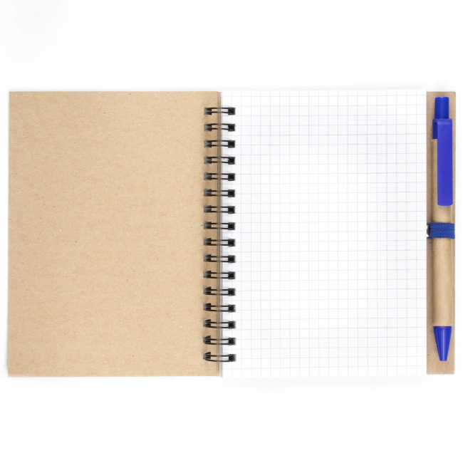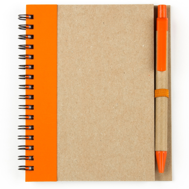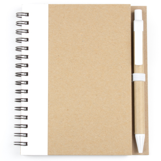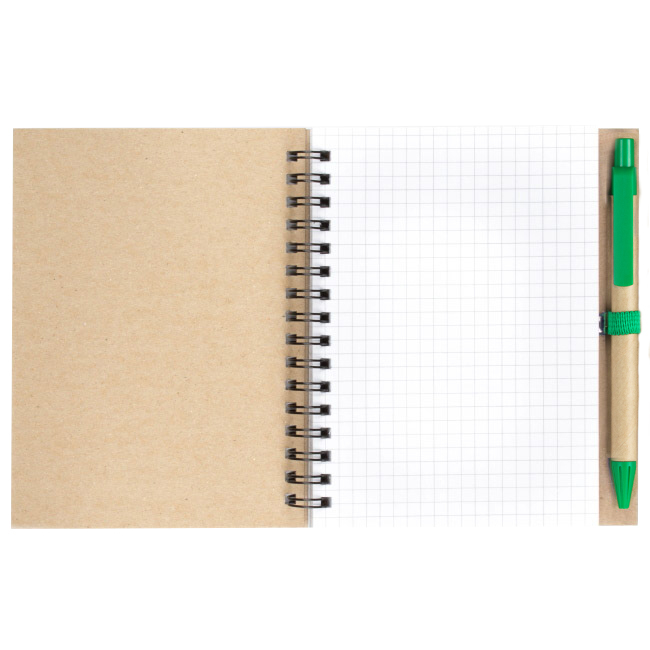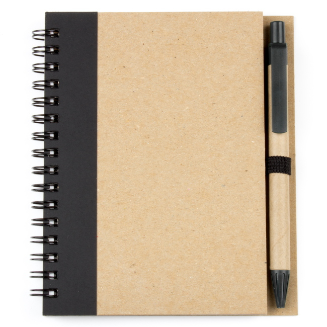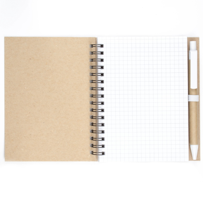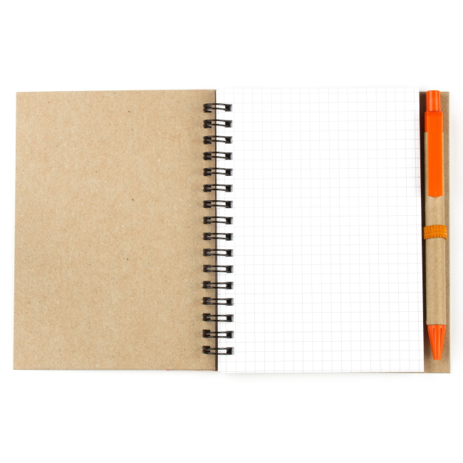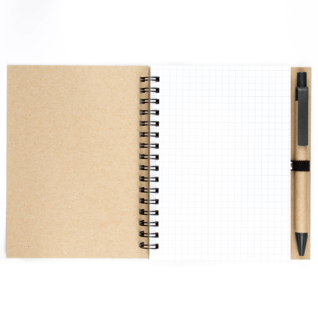 Эко блокнот формата А6 на пружине, изготовленный из переработанного картона. Имеет блок белого цвета, размеченный в клетку. Набор укомплектован ручкой в цвете декоративной полосы на блокноте. Возможно нанесение методом трафаретной или уф печати.