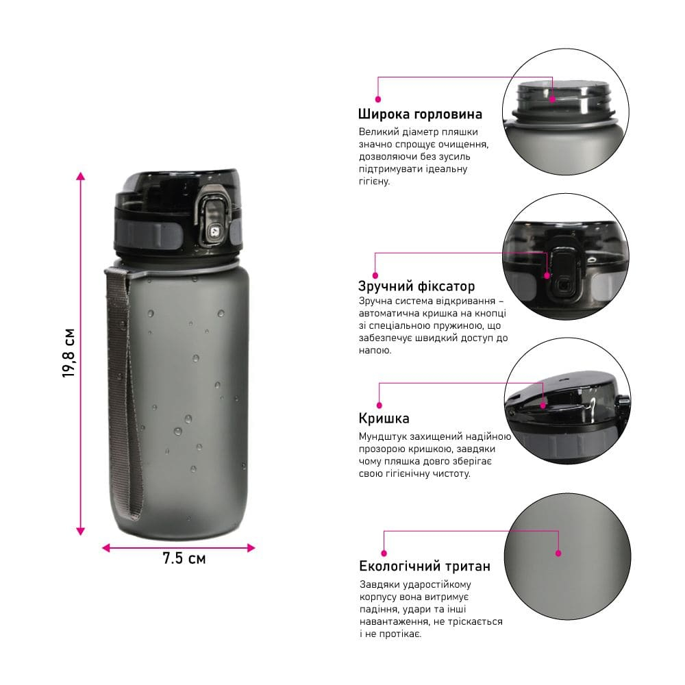 Бутылка для воды Line Art La Plata объёмом 600 мл — это стильный и удобный аксессуар для спорта, прогулок, офиса и ежедневного использования. Корпус выполнен из прочного тритана (BPA-free), устойчивого к ударам и запахам, что делает бутылку безопасной и долговечной. Матовая поверхность приятна на ощупь и защищает изделие от мелких царапин. Удобная крышка оснащена кнопкой открытия с фиксатором, предотвращающим случайное раскрытие в сумке. Для питья предусмотрен пластиковый носик с откидной защитной крышкой, обеспечивающий гигиеничность. Широкое горлышко облегчает наполнение и очистку, а прочный встроенный нейлоновый ремешок делает переноску комфортной. Бутылка идеально подходит для корпоративных проектов: на её поверхность можно нанести логотип методом УФ-печати, шёлкографии или тамподрука, превращая La Plata в практичный брендированный подарок.