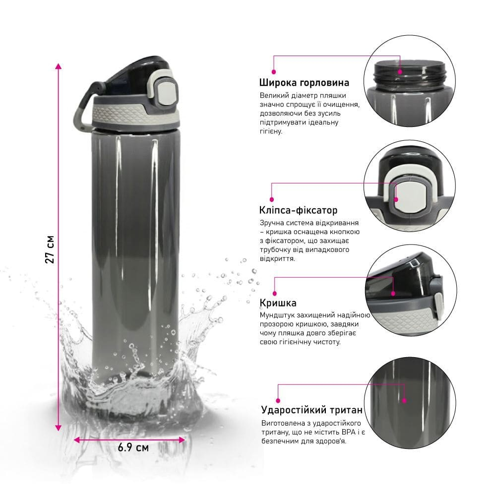 Универсальная бутылка для воды Rosario на 700 мл от бренда Line Art — практичный аксессуар для тех, кто ценит комфорт и стиль. Она изготовлена из ударопрочного тритана (BPA-free), не впитывает запахи и подходит для любых напитков. Продуманный дизайн включает крышку с кнопкой и фиксатором, предотвращающим случайное открытие, а также удобную ручку-карабин для переноски. Пластиковый носик для питья с защитной откидной крышкой обеспечивает гигиеничность использования в спортзале, в офисе или на улице. Благодаря TPR-вставкам на крышке бутылку легко открывать даже мокрыми руками. Широкое горлышко позволяет быстро наливать воду и удобно мыть емкость. Размеры 6.9 × 6.9 × 27 см и вес всего 144 г делают бутылку идеальной для ежедневного ношения в сумке или рюкзаке. Индивидуальная упаковка выполнена из плотного картона. На поверхность можно нанести логотип, слоган ил изображение с помощью тампопечати или цифровой УФ-печати — отличный выбор для корпоративных подарков и промоакций.