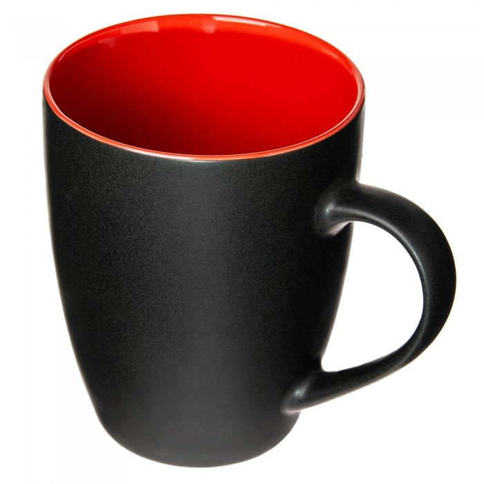 Чашка произведена из керамики высшего качества. Со временем эксплуатации она не потеряет своей изначальной новизны, не потрескается. Снаружи все варианты окрашены в черный матовый цвет. Внутри изделие глянцевое. На выбор можно выбирать пять вариантов цвета. Методом обжиговой деколи на внешнюю поверхность можно нанести логотип вашей компании или надпись. Крушка с нанесением может стать подарком во время рекламной или промо акции, дополнительным рекламным ходом.