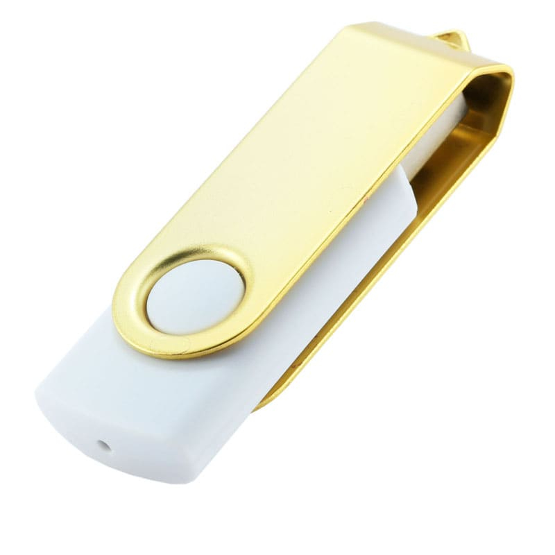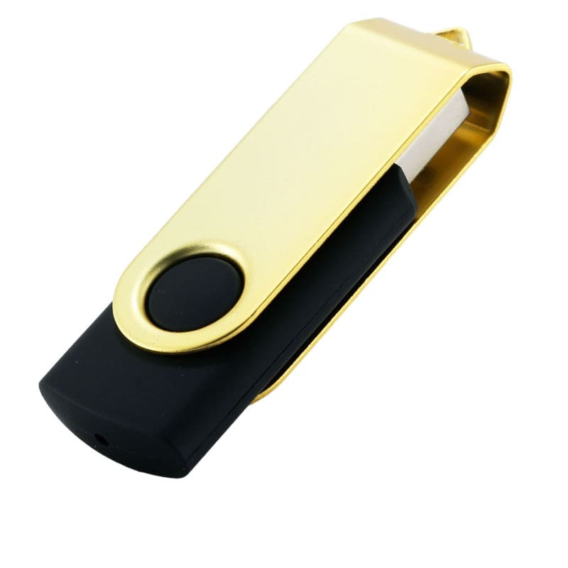 Флешка Twister – это современный носитель данных, сочетающий стильный дизайн и надежность. Корпус выполнен из прочного прорезиненного пластика, доступного в 10 ярких цветах, а металлическая поворотная скоба представлена в элегантном золотом оттенке, что делает аксессуар эффектным и универсальным. Благодаря вращающемуся механизму флешке не требуется колпачок, а компактное кольцо позволяет носить её на брелоке или шнурке. Устройство доступно в объемах памяти 4, 8, 16, 32 и 64 ГБ, чего достаточно для хранения документов, фотографий и мультимедиа. Интерфейс USB 2.0 гарантирует стабильную передачу данных. Размер носителя – 20×58×10 мм, вес всего 15 г. Флешка идеально подходит для брендирования и корпоративных подарков: на металлической скобе можно разместить логотип или надпись методами лазерной гравировки, тампопечати или УФ-печати.