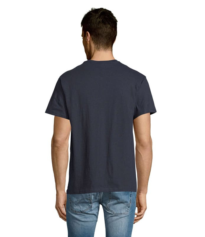Мужская футболка с короткими рукавами делается из полугребенного хлопка, который мягкий на ощупь, а его плотность составляет 140-150 г/м2. Изделие доступно в широком ассортименте цветов, а также в размерах: S, M, L, XL, XXL, 3XL. Тенниска выполнена с прямым низом, без боковых швов, V-образным вырезом, укрепляющей тесьмой по вороту и двухслойной резинкой по его краю. Также доступно брендирование одежды, что позволяет использовать её в качестве запоминающегося подарка с рекламным посылом компании или основы для униформы сотрудников.