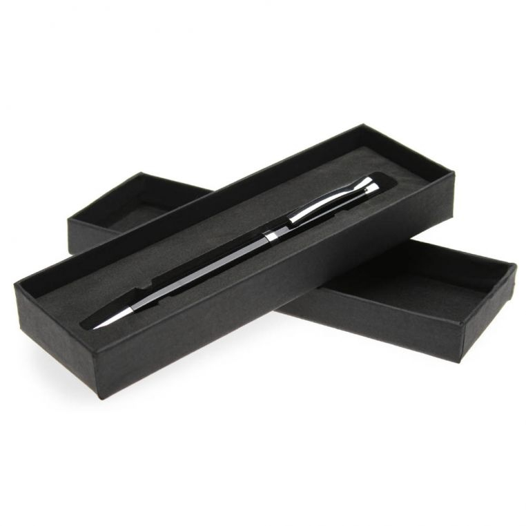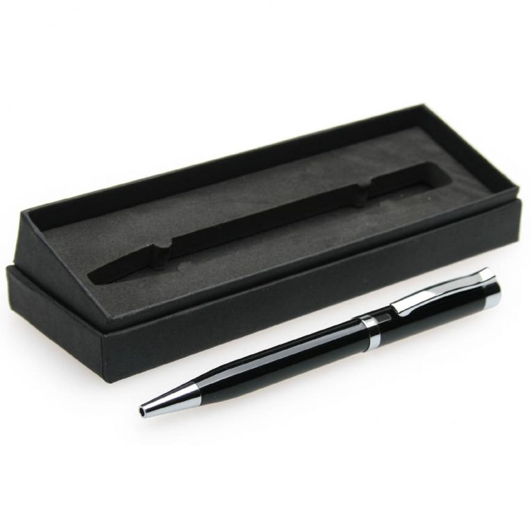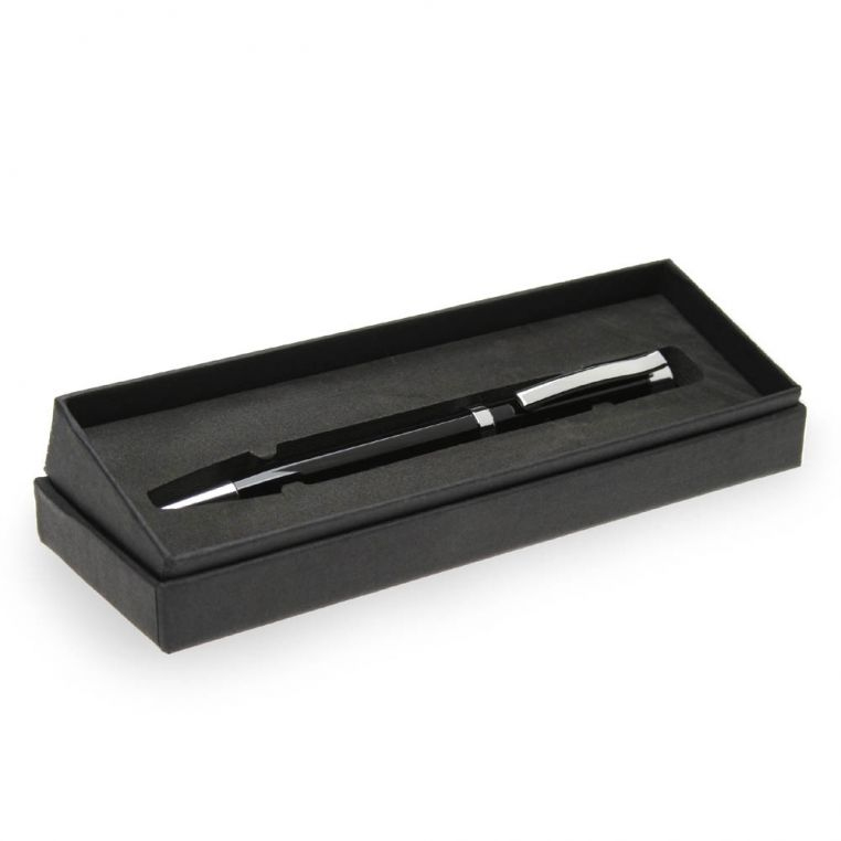 Черная металлическая ручка с поворотным механизмом. Клип и части корпуса выполнены с зеркальным хромированием. Сам корпус выполнен из металла с покрытием черным лаком. Стержень большой емкости Ultra Metall с длиной линии не менее 8500 метров. Каждая ручка упакована в черную картонную упаковку. На корпусе доступно нанесение лазерной гравировкой или уф печатью. Подойдет в качестве корпоративного подарка.