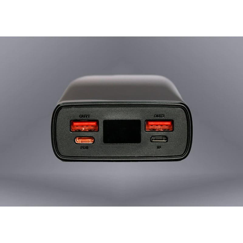Повербанк TurboCharge 20000 mAh – это мощное зарядное устройство со стильным дизайном. Модель предназначена для зарядки смартфонов, планшетов, ноутбуков. Может одновременно заряжать 2 мобильных телефона. Корпус павербанка металлический – изготовлен из алюминия с матовым покрытием. Передняя панель декорирована фигурным вырезом. Повербанк имеет несколько портов – два выхода USB, type-С Input и микро Input (вход: 5 В 2A/9 В 3A, выход: 5 В 3 А/9 В 2 А/12 В 1,5 А). Емкость повербанка – 20000 mAh. Количество заряда модели в процентах отображает светодиодный дисплей на нижней панели. Устройство оборудовано литием полимерной батареей. Повербанк поддерживает функцию быстрой зарядки Quick Charge 3.0 – аккумулятор телефона может получить 50% заряда через 30 минут или менее (PD/QC 18 Вт). Размеры зарядного устройства – 88,3 х 98,7 х 88,5 мм. Вес – 500 г. Повербанк удобен для переноски одной рукой. Его можно брать с собой в путешествии и не беспокоиться о заряде телефона.