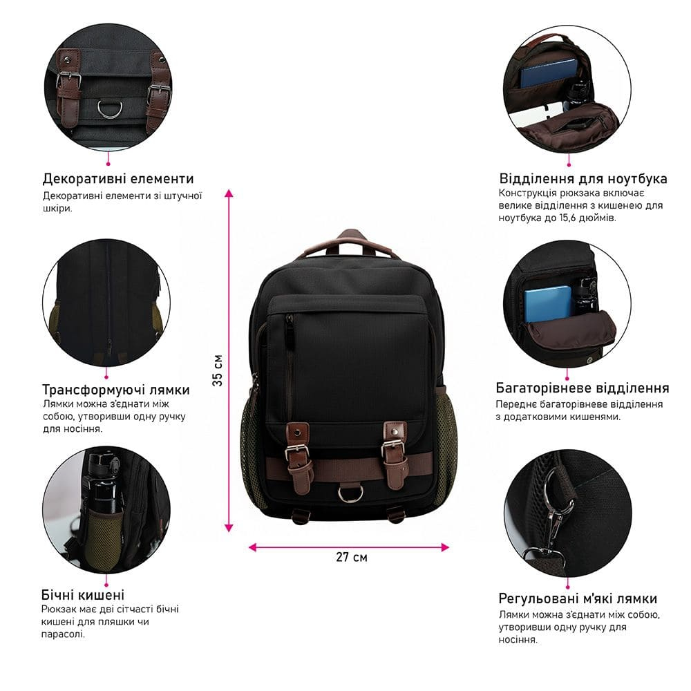 Рюкзак Nikibo Summit 2в1 — стильное и функциональное решение для города и путешествий. Выполнен в сдержанном английском стиле из прочной водоотталкивающей ткани, надежно защищающей вещи от влаги и загрязнений. Объём 13 литров оптимален для повседневных нужд: ноутбук до 13", книги, документы, зарядные устройства и аксессуары. Основное отделение оснащено удобным органайзером и внутренними карманами для мелочей. Снаружи — передний карман на молнии и боковые карманы для бутылки воды или зонта. Анатомическая спинка и мягкие регулируемые лямки обеспечивают комфорт при носке, верхняя ручка удобна для переноски в руке. Конструкция 2в1 позволяет трансформировать рюкзак или сочетать его с дополнительным модулем, что расширяет функциональность. Классический чёрный цвет делает модель универсальной: она гармонично сочетается как с деловым стилем, так и с повседневной одеждой. Отличный выбор для студентов, офисных работников и активных людей, ценящих удобство и элегантность.
