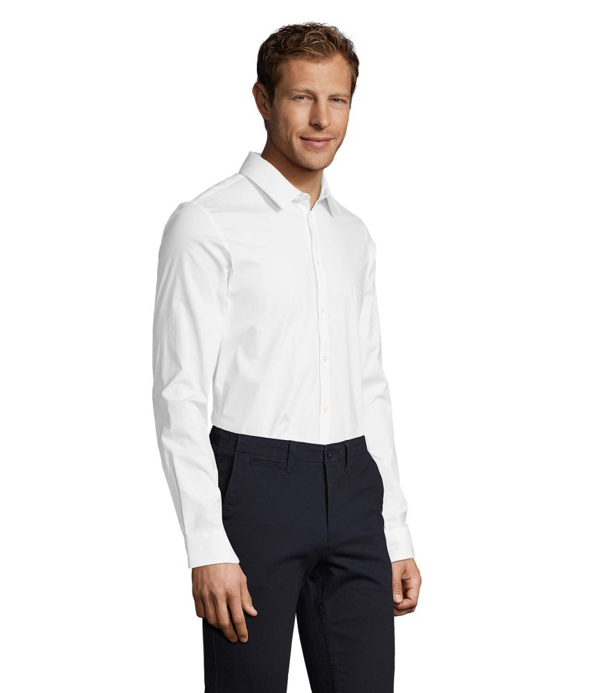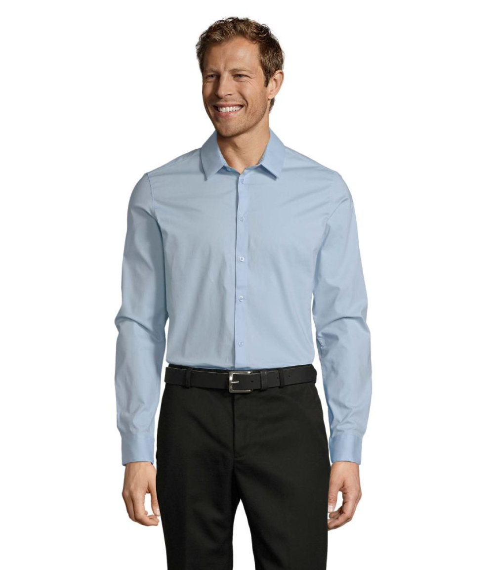 Мужская рубашка Blake сделана с длинным рукавом и пошита из ткани стрейч. Сорочка выполнена в различных цветах, имеет приталенную форму, классический манжет и строгий вид. Такую одежду выгодно использовать в качестве подарка или как основу для создания корпоративного стиля сотрудников. А дополнительным плюсом будет возможность нанести на поверхность рубашки логотип, изображение, надпись или любой другой визуальный элемент. Благодаря этому французское изделие торговой марки Sol’s выгодно использовать в рекламных целях.
