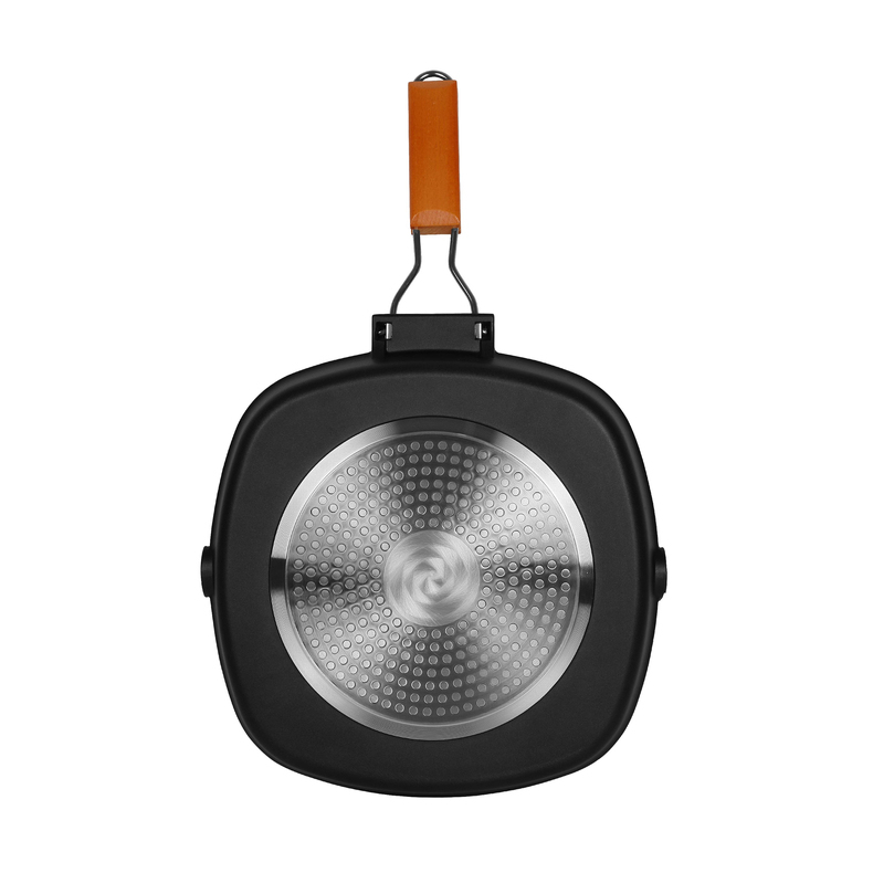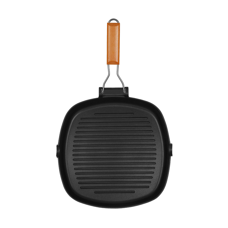 Модель оснащена съемной складной деревянной ручкой, которая не нагревается и обеспечивает комфорт при использовании. Возможность снять ручку упрощает хранение и экономит место. Сковорода подходит для газовых и электрических плит.