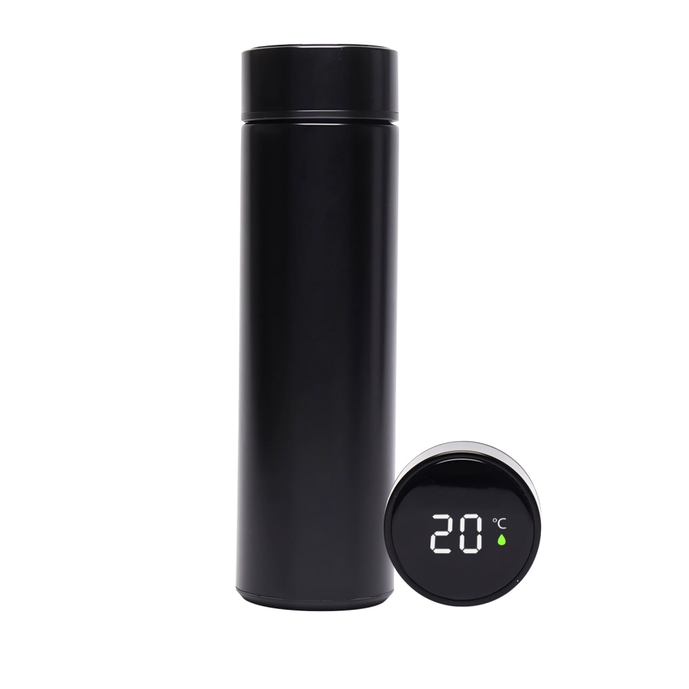 Объём термоса составляет 500 мл, что оптимально для кофе, чая или холодных напитков в течение дня. Экран автоматически отключается через 4 секунды, что обеспечивает длительный срок службы батареи без необходимости подзарядки. Герметичная конструкция предотвращает протекание и сохраняет температуру напитка.
