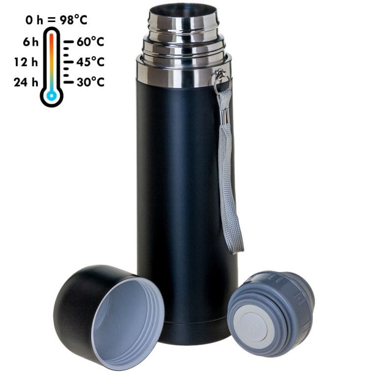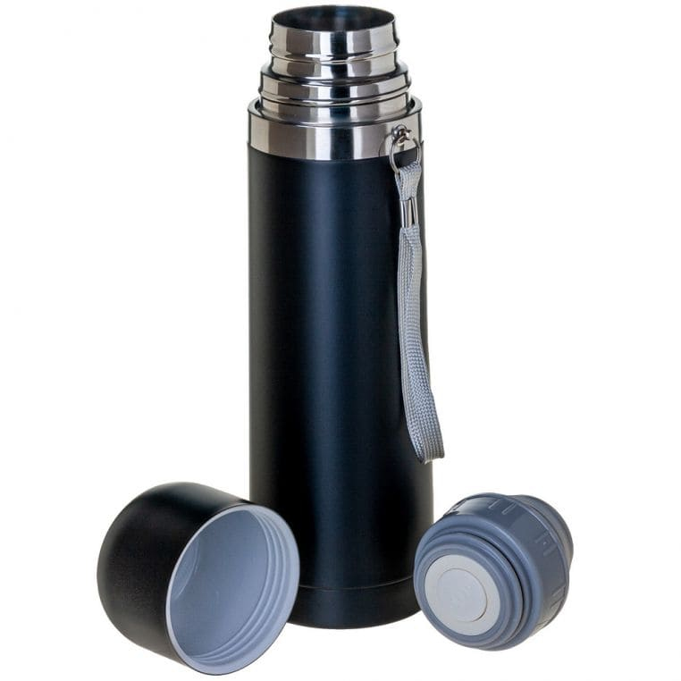 Термос — незаменимая вещь на работе, на отдыхе, в поездке. Он сделан из нержавеющей стали, которая отличается не только ударопрочностью, но и стойкостью к износу. Двойные стенки способствуют сохранению температуры внутри. Объем: 500 мл. Представлен в двух цветах. Возле крышки серебристая полоса с креплением и ремешком на руку. Методом лазерной гравировки на однотонную поверхность можно нанести логотип, бренд, надпись. Брендирование служит магнитом для клиентов. Термос можно использовать в качестве подарка на промо акциях.