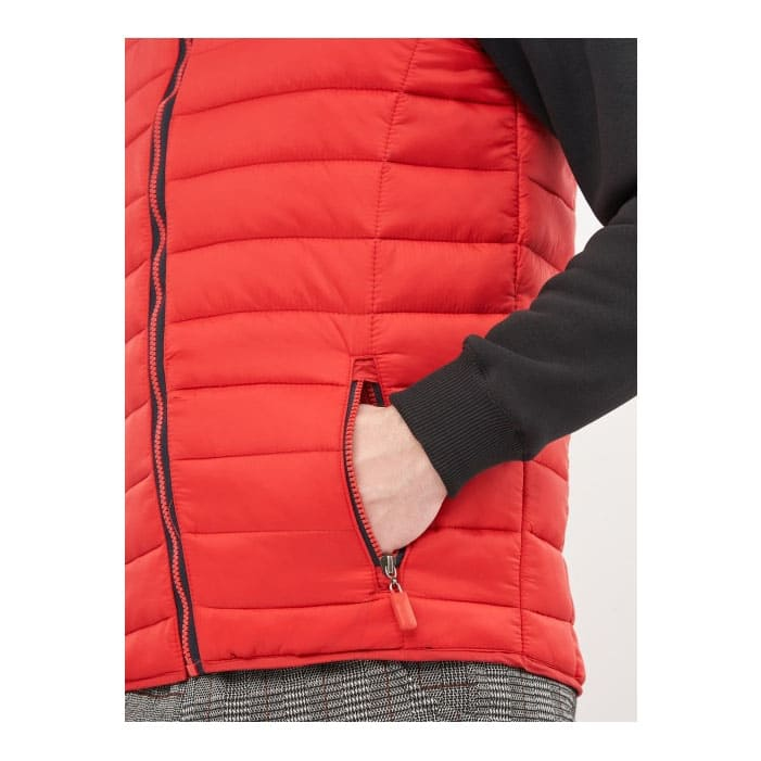 Жилет оснащен двумя боковыми карманами с контрастными молниями, а также центральной застежкой-молнией, подчеркивающей современный дизайн. Верхний материал и подкладка изготовлены из 100% полиэстера, что делает изделие износостойким и простым в уходе. Допускается машинная стирка при температуре до 30°C в деликатном режиме. Жилет идеально подходит для работы, путешествий и корпоративной одежды. Для нанесения логотипа используются вышивка.