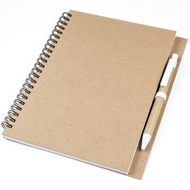 Блокнот A5 з ЕКО ручкою. Найпопулярніший формат для виставок, конференція та роботи. Обкладинка виготовлена з картону, скріплена пружиною. Внутрішній блок білого паперу в клітинку. Набір містить еко ручку. Нанесення зображення можливе методом ультрафіолетового друку або трафаретного друку. Також можливий друк на ручці.