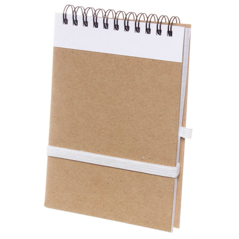 Блокнот містить 50 білих аркушів у клітку. Розмір: 148*105 мм, формат А6. Обкладинка та підкладка з картону кольору дерева прикрашена яскравою лінією та гумкою одного кольору. Праворуч розташована гумка, в яку можна помістити ручку для запису важливої інформації. Можливе нанесення логотипу методом УФ або трафаретного друку. Можливо використовувати як подарунок партнерам.