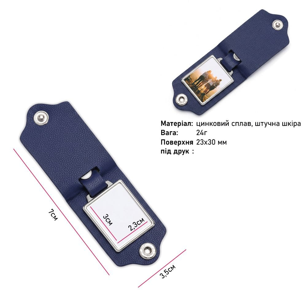 Брелок Klappe виконаний із металевого сплаву з матовим покриттям, має приблизні розміри 3,2×4×0,5 см та діаметр кільця близько 3,2 см — це робить його легким та зручним для кріплення до ключів або сумки. Металева матова поверхня надає аксесуару стриманий преміум-вигляд і водночас слугує чудовою основою для нанесення логотипу. Брелок призначений для щоденного використання й водночас може стати стильним корпоративним сувеніром, що забезпечує постійну присутність бренду. Для персоналізації доступні такі методи нанесення: • УФ-друк та/або тиснення — дозволяють розмістити кольоровий логотип чи слоган. Зона нанесення становить приблизно 23×30 мм, що дає достатньо простору для розміщення фірмового знаку. Брелок Klappe — чудовий вибір для компаній, які бажають подарувати партнерам чи співробітникам практичний аксесуар, що щодня нагадує про бренд і підкреслює увагу до деталей.