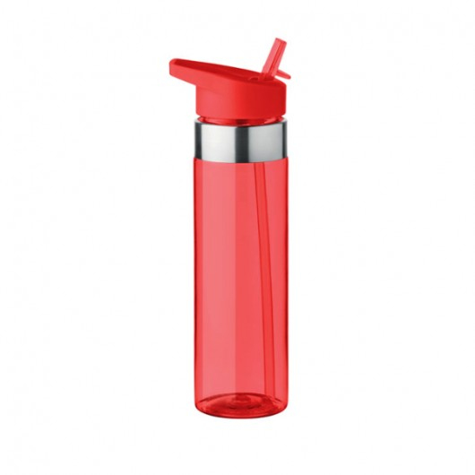 Пляшка для напоїв виготовлена з тритану. Її обсяг становить 450 мл. Кришка обладнана спеціальною трубочкою для пиття, а також вона герметично закриває основну ємність. Все це зроблено у стильному графітовому, червоному та синьому кольорі. Але за допомогою різних технологій нанесення тамподруку та гравіювання на поверхню пляшки можна додати унікальний логотип компанії, який виступатиме як реклама. Це дозволяє використовувати виріб як корисний подарунок для співробітників або клієнтів.