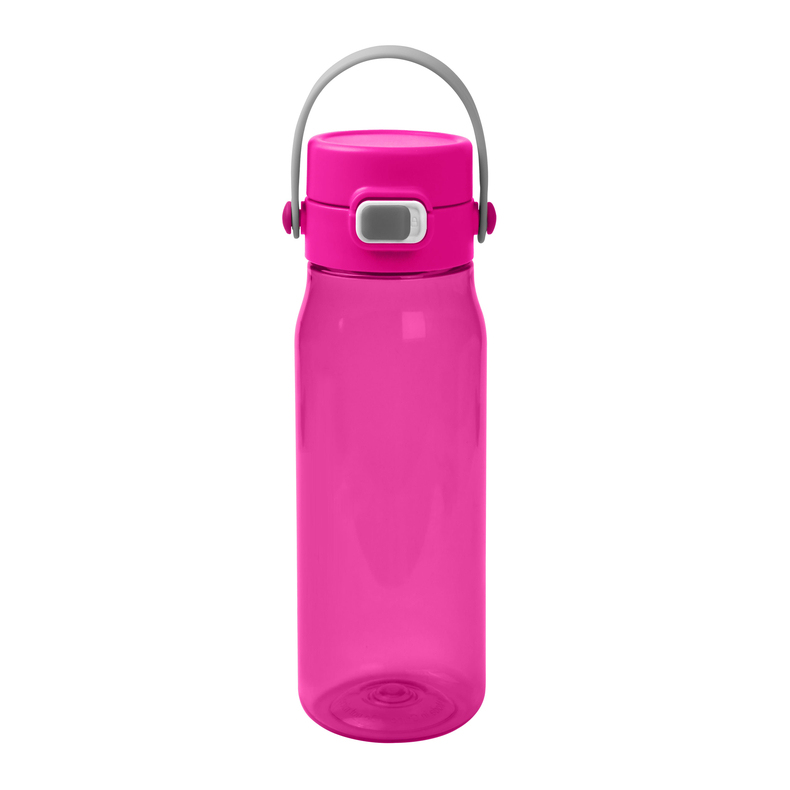 Пляшка для пиття 640 мл., матеріал пластик (BPA FREE), кришка з надійним відкидним механізмом, що відкривається та блокується флеш-кнопкою, має силіконову ручку, яку зручно тримати або переносити пляшку, всередині кришки вмонтовано знімне ситечко з нержавіючої сталі. . Група нанесення шовкодруку, УФ-друк. Розміри: висота 22 см, діаметр колби 7 см.