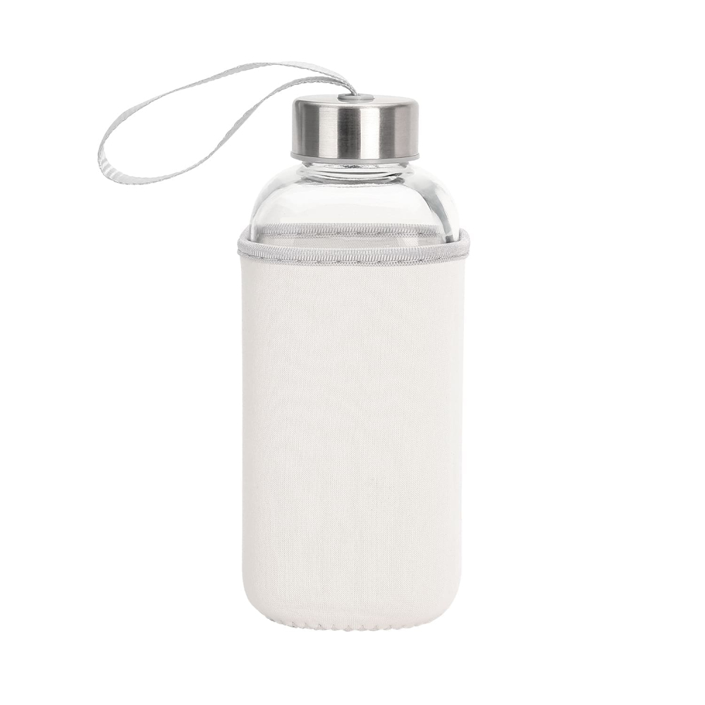 Переваги: скло високої якості, якісна нержавіюча сталь, текстильна вставка для зручного хвату, стійкість до корозії, міцність. Використання: особиста пляшка для напоїв, корпоративний сувенір із логотипом, подарунок.