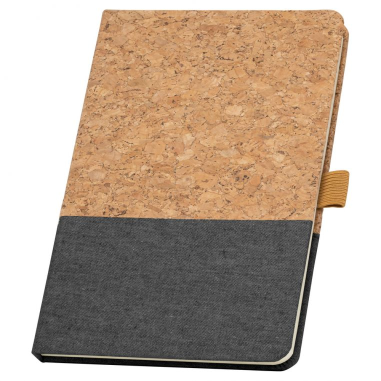 Записна книжка формату А5 з твердою обкладинкою з корку та льону. Є резинка-тримач для ручки. Зручний та практичний подарунок. Велика область для внесення нотаток, ескізів та проектів. Блок - кольору слонової кістки, 192 сторінки в лінійку. Папір відповідає стандартам стійкого керування лісами. Індивідуальна упаковка - конверт із крафт-паперу.