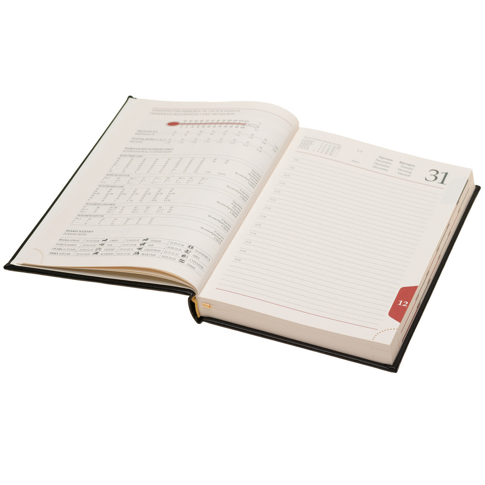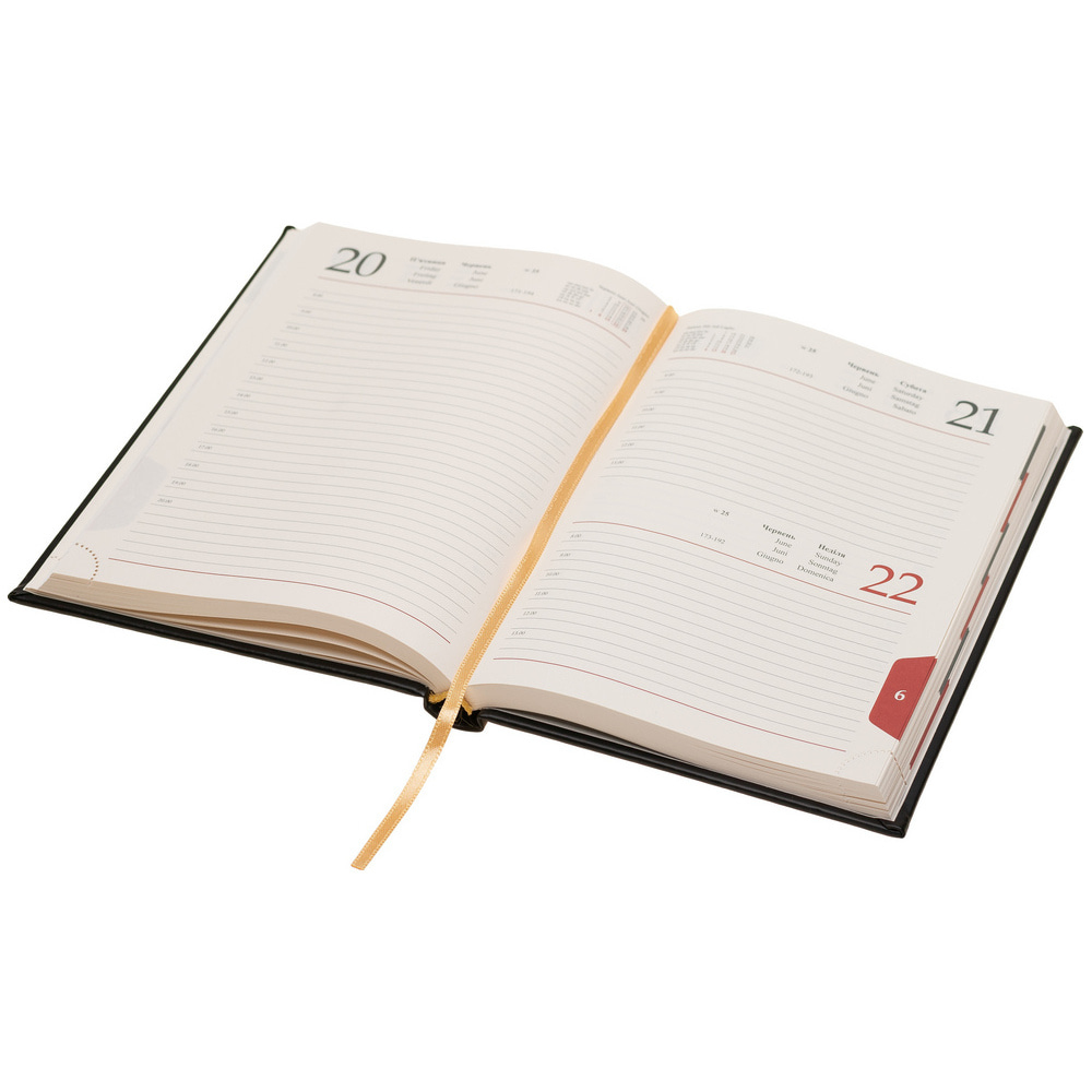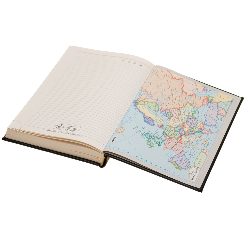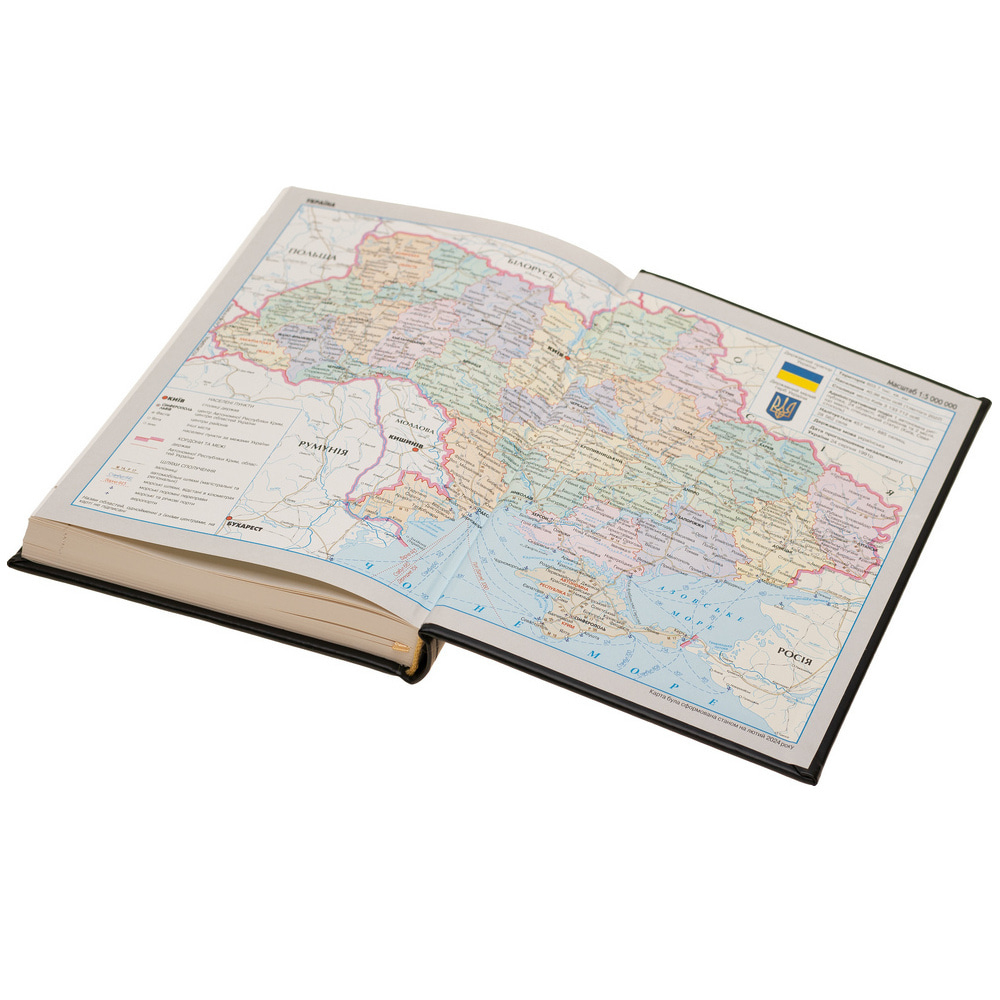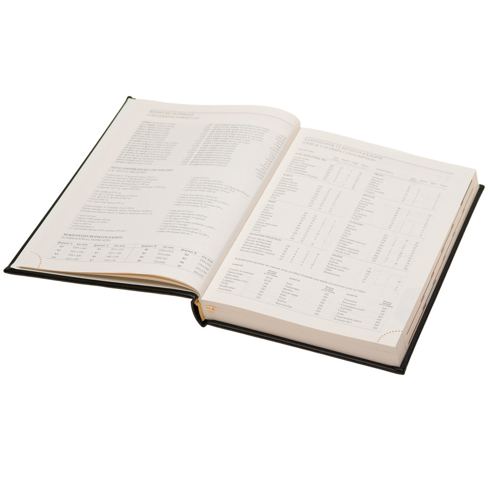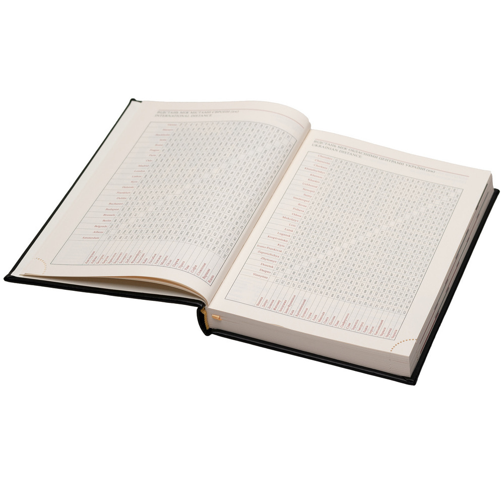 Датований щоденник. Формат А5 (145 x 205 мм). Тверда обкладинка, матеріал - шкірзам. Містить: інфо. блоки, щоденник, блокнот витрат, телефонну книгу, карти Європи та України. Мови: укр., англ., нім., італ. Друк: двоколірний. Блок - кремовий папір 90 г/м², одна закладка, прошитий корінець щоденника, перфоровані аркуші, чистий передній форзац, задній форзац - карта України. Кількість сторінок - 352.