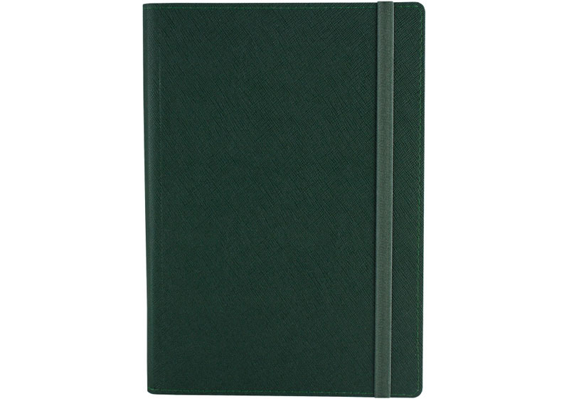 Формат А5, кількість сторінок - 320, колір паперу блоку – білий, щільність - 70 г/м2. Дизайн сторінки - клітинка з полями. Колір друку – темно-сірий, форзаци – без друку, закладка – шовкова стрічка синього кольору. Обкладинка штучна шкіра. Матеріал змінює колір при тисненні.