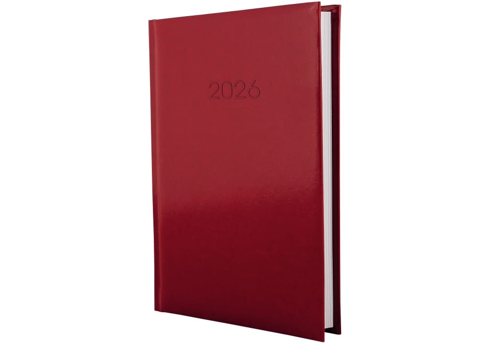 Датований щоденник FLASH А5 на 2026 рік поєднує сучасний дизайн і практичність, що робить його незамінним у роботі, навчанні та повсякденних справах. Формат А5 дозволяє зручно носити його з собою, а внутрішній блок на 336 сторінок виготовлений із білого паперу щільністю 65 г/м². Одна сторінка призначена для робочого дня, субота й неділя розміщені разом. Додатково передбачено 14 сторінок у клітинку для нотаток та 4 інформаційні сторінки. Оформлення виконане у бордовому та темно-сірому кольорах, форзаци містять повнокольорові карти України та Європи, є шовкова закладка бордового кольору. На полях сторінок розташовані регістри з місяцями, мова блоку – українська та англійська. У довідкових матеріалах – календарі на 2026–2027 роки, офіційні та релігійні свята, таблиця відстаней між містами. Логотип можна нанести методом тиснення, шовкотрафарету чи тамподруку, перетворивши щоденник на елегантний бізнес-сувенір.