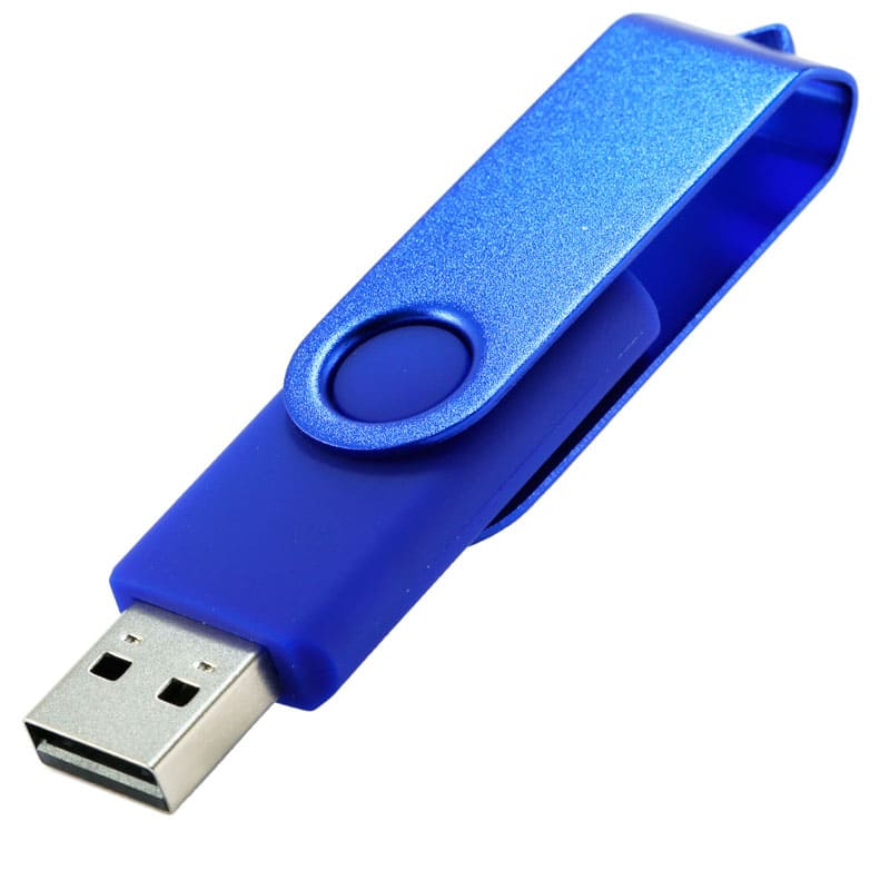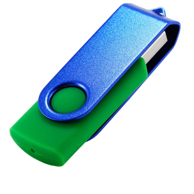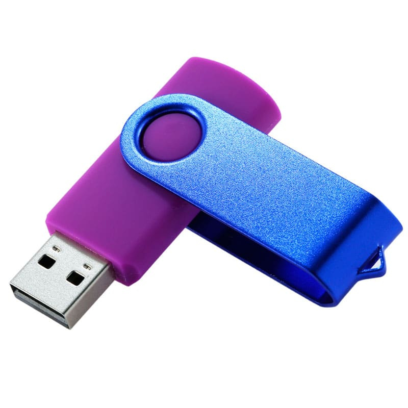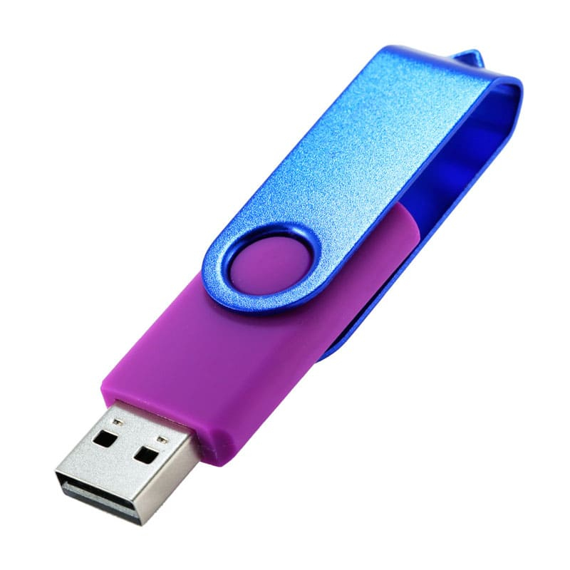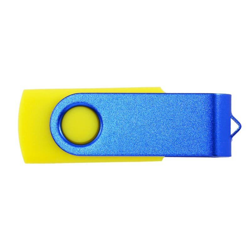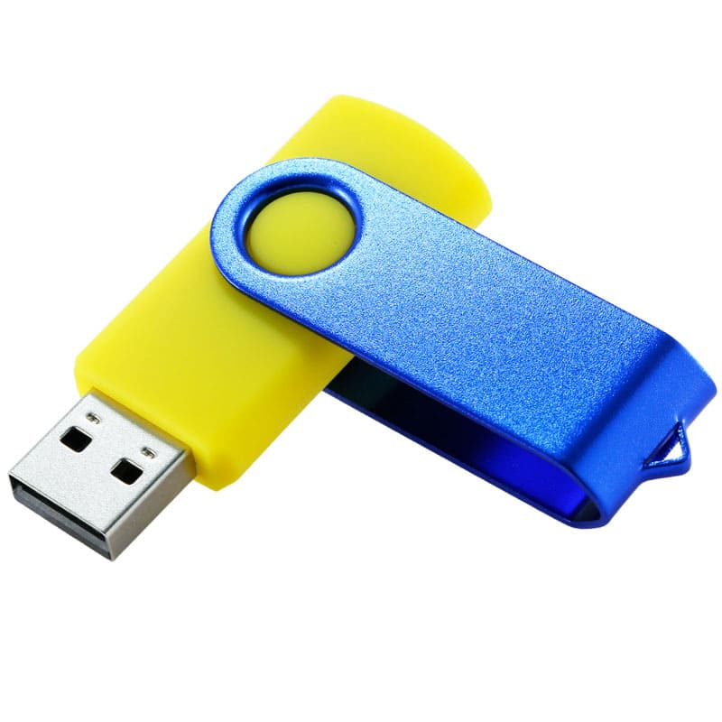 Флешка Twister – практичний та сучасний накопичувач даних, що поєднує надійність і стильний дизайн. Корпус виготовлений із прогумованого пластику та представлений у 10 яскравих кольорах, серед яких легко обрати оптимальний варіант для корпоративного стилю. Особливістю моделі є металева поворотна скоба у насиченому синьому відтінку, яка захищає USB-роз’єм і додає аксесуару виразності. Завдяки механізму обертання флешці не потрібна кришка, а невелике кільце дозволяє прикріпити її до брелока чи шнурка. Накопичувач доступний у варіантах пам’яті 4, 8, 16, 32 і 64 ГБ, чого достатньо для зберігання документів, фото чи мультимедіа. Інтерфейс USB 2.0 гарантує стабільну роботу та зручну передачу файлів. Розмір пристрою – 20×58×10 мм, вага лише 15 г. Флешка Twister чудово підходить для корпоративного використання: на металевій скобі можна нанести логотип або напис за допомогою лазерного гравіювання, тамподруку чи УФ-друку.