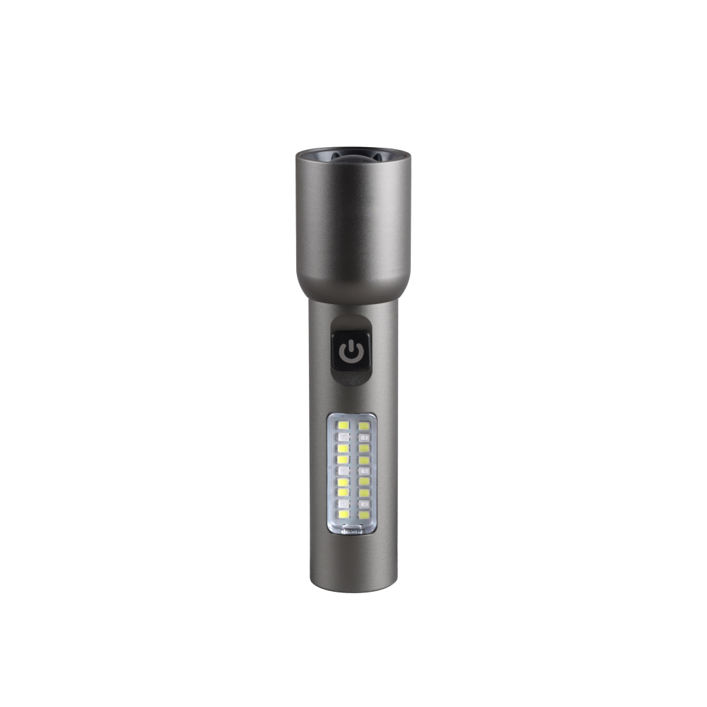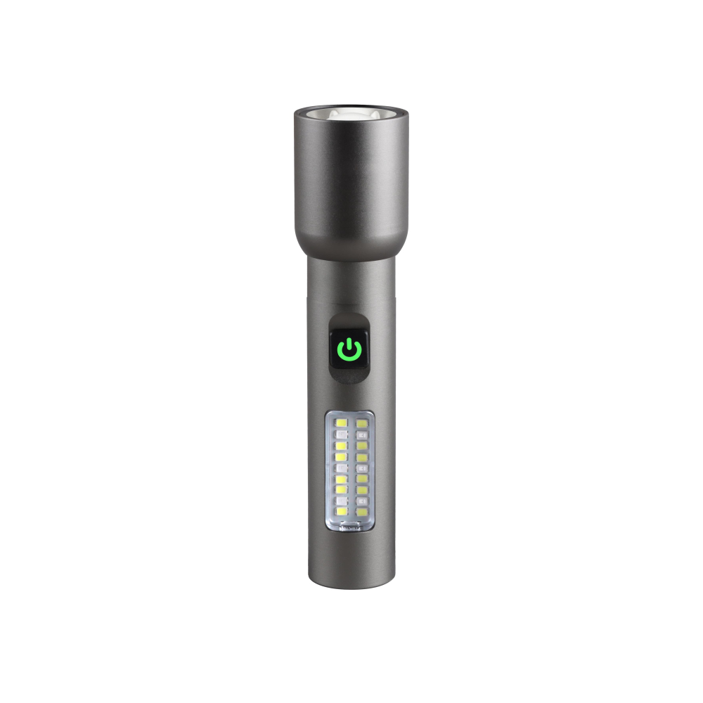 Ліхтарик Seed, TM Discover — надійний і багатофункціональний LED-пристрій, створений для пригод, подорожей і щоденного використання. Оснащений потужним комбі-світлодіодом: основний T6 10 Вт для яскравого спрямованого променя і додатковим COB 3 Вт для широкого бокового освітлення. Працює від одного перезаряджуваного акумулятора 18650, 1800 мА·год, що забезпечує тривалу автономну роботу. Ліхтарик має 6 режимів: повна потужність, половинна, стробоскоп, бокове освітлення SMD білим і червоним, червоний стробоскоп, та режим виключення. Корпус виготовлений з алюмінію, головка діаметром 35 мм, ручка — 28 мм; довжина у складеному стані — 138 мм, в розкладеному — 155 мм. Заряжається через порт USB-Type-C. Вага моделі — 144 грами. Доступний у сірому кольорі. Методи нанесення: гравіювання та УФ-друк. Індивідуальна упаковка, кожен пристрій постачається в подарунковій картонній коробці. Є безпечним для середовища.