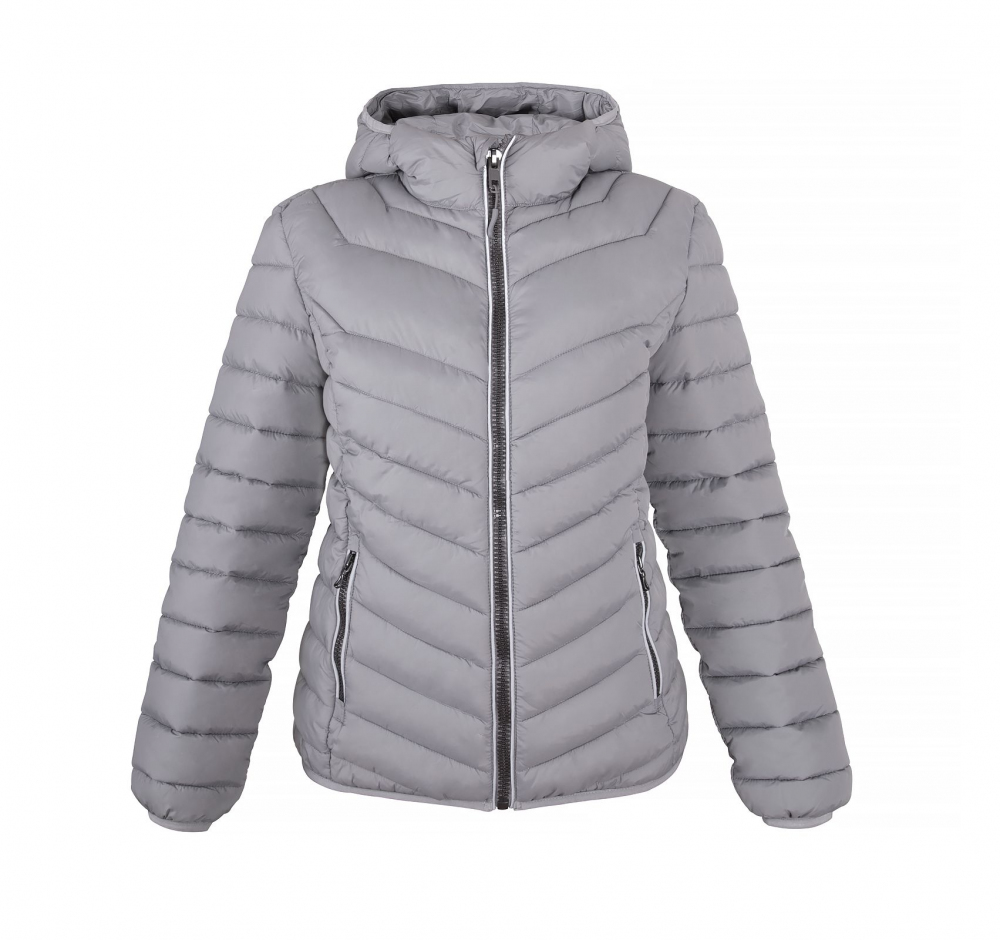 Куртка Iceberg woman - стильна куртка жіноча з капюшоном. Ця модель представлена в одному кольорі, в таких розмірах: S; M; L; XL. Куртка утеплена, як набивка використаний поліестер з ефектом пера. Верх куртки це 100% нейлон, тому власник такої куртки буде надійно захищений від вітру та негоди. Куртка має дві зовнішні кишені на блискавках, які на сірому кольорі виглядають контрастно та стильно. Ви можете замовити брендування куртки логотипом або будь-яким написом або зображення. Після брендування, куртку можна використовувати як хороший рекламний продукт, що допоможе вашій фірмі стати більш відомою та відомою.