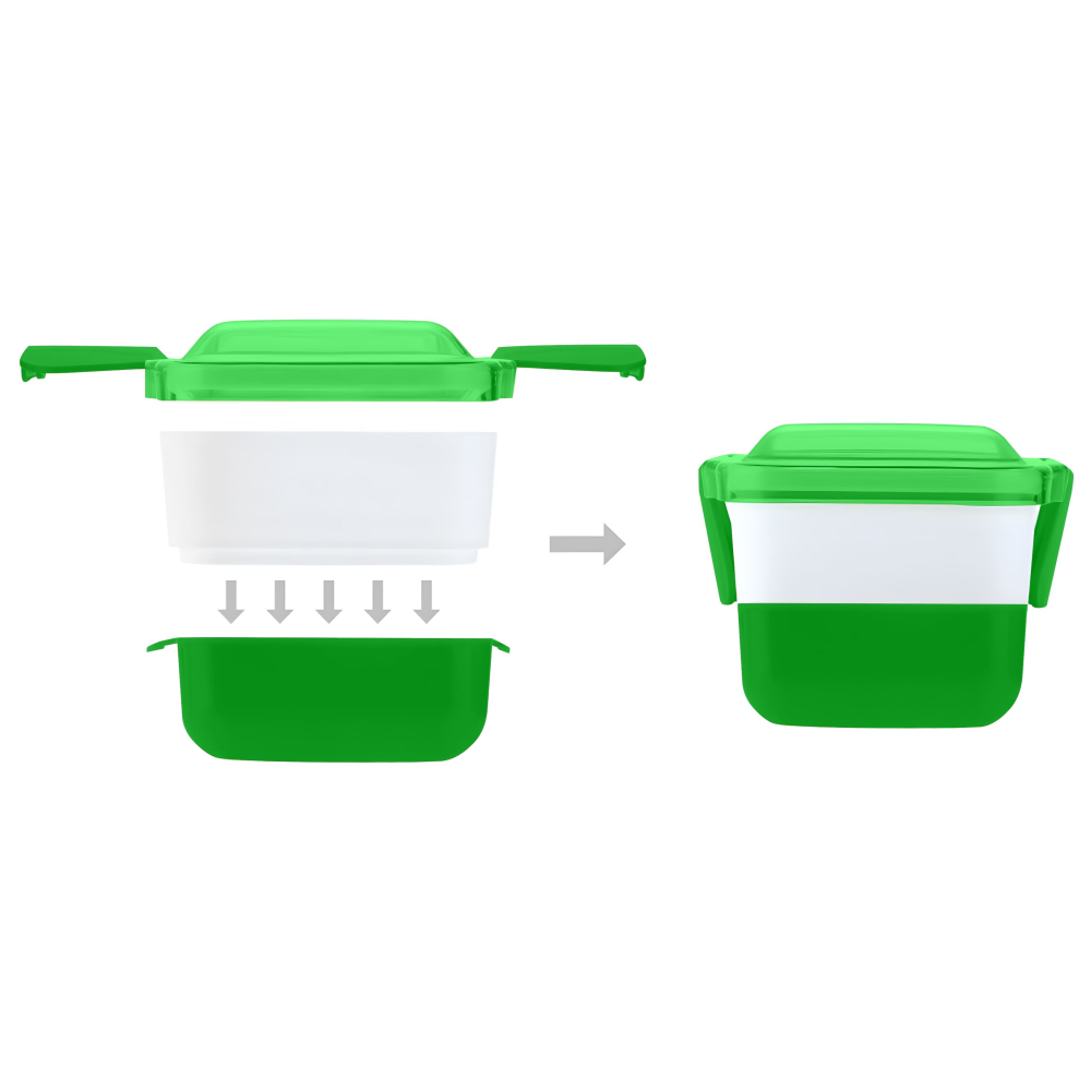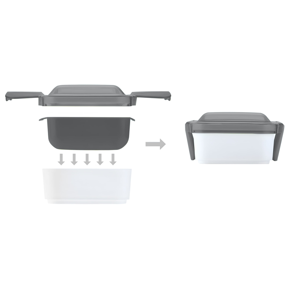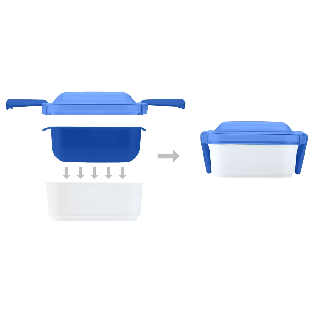 Ланч-бокс Leo – стильний та функціональний аксесуар для зручного зберігання їжі. Він виготовлений із безпечного харчового пластику: корпус з міцного PP, кришка – з прозорого AS-пластику, що щільно фіксується завдяки подвійним замкам. Об’єм 950 мл дозволяє брати повноцінний обід із собою на роботу, навчання чи прогулянку. Подвійна конструкція складається з двох окремих контейнерів, що дає можливість розділяти страви та зберігати їх свіжими. Ланч-бокс компактний і легко вміщується у сумку чи рюкзак. Для персоналізації чи корпоративних подарунків можна застосовувати такі методи нанесення: тамподрук, УФ-друк, шовкотрафарет. Leo – це надійний і сучасний вибір для щоденного використання.