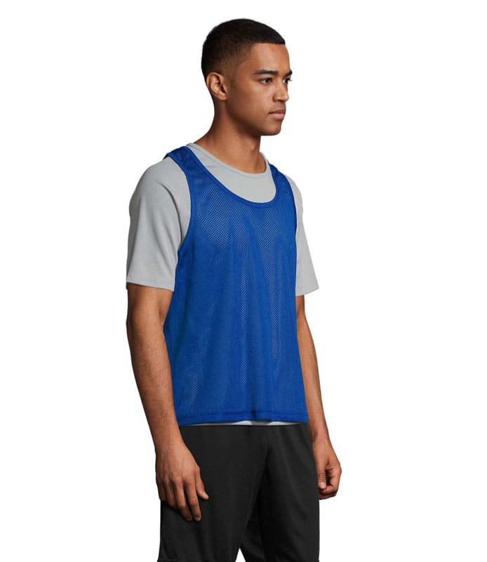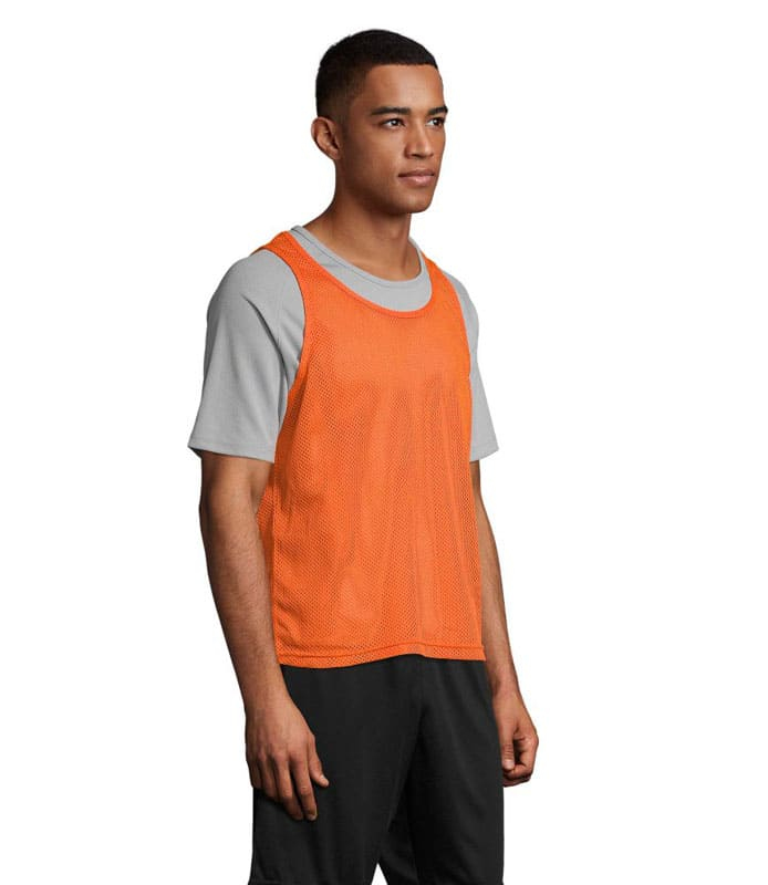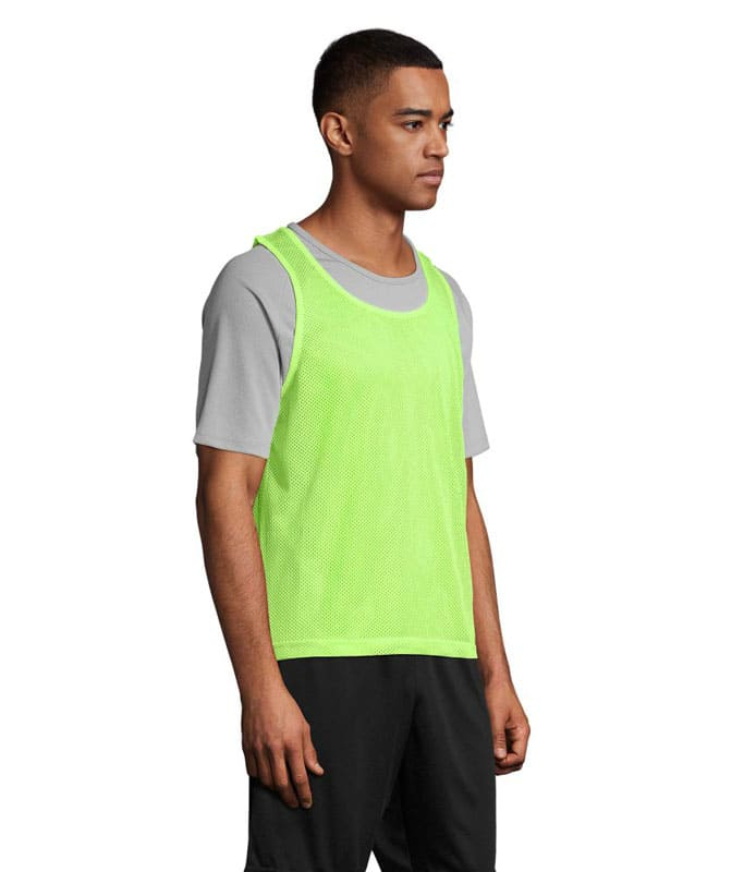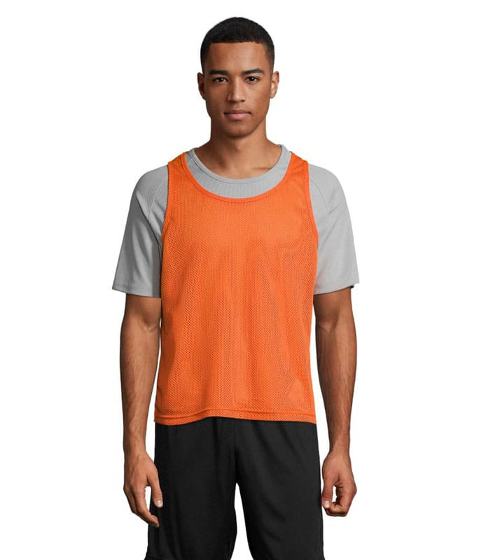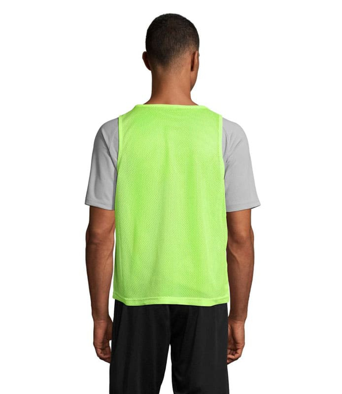 Футбольна манішка SOL’S Anfield — легка та зручна тренувальна майка, створена для занять спортом, командних ігор і активного відпочинку. Виріб виготовлений зі 100% поліефірної сітки з перфорованою структурою, що забезпечує відмінну вентиляцію та ефективне відведення вологи під час інтенсивних навантажень. Завдяки щільності 80 г/м² модель є дуже легкою та комфортною у використанні. Манішка має класичний вільний крій із круглим коміром, а акуратна облямівка в тон на горловині та проймах додає виробу охайного вигляду та підвищує його зносостійкість. Універсальний дизайн підходить як для дорослих, так і для дітей, що робить її чудовим варіантом для спортивних команд, шкіл і тренувальних груп. Модель сертифікована за стандартом PETA Approved Vegan, що підтверджує відсутність матеріалів тваринного походження. Манішка легко переться при температурі 40 °C та зберігає форму навіть при частому використанні. Для нанесення логотипів, номерів або написів використовуються методи термотрансферу та шовкотрафаретного друку.