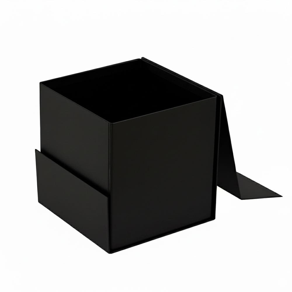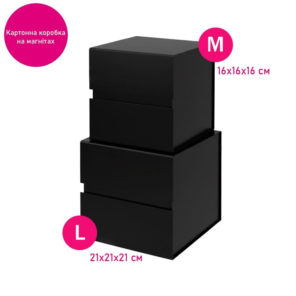 Складна коробка кубічної форми підходить для пакування сувенірів, подарунків та невеликих товарів. Виготовлена з щільного картону 1200 г/м², зовні покрита крейдованим папером 157 г/м² із матовою ламінацією, що захищає поверхню та надає охайного вигляду. Конструкція легко складається завдяки самоклейним стрічкам і займає мало місця у складеному стані. Магнітний клапан забезпечує надійне закриття та зручність під час використання. Внутрішні розміри коробки — 15,5 × 15,5 × 15,5 см, вага — близько 375 г. Поверхня підходить для нанесення логотипу або зображення за допомогою УФ-друку чи шовкотрафаретного друку, що дозволяє використовувати коробку як подарункову або фірмову упаковку.