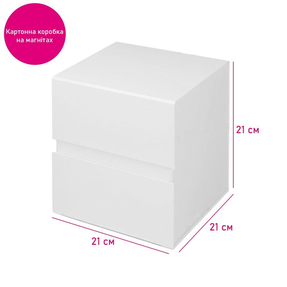 Подарункова коробка Bergamo Siena 21×21 см (арт. 120130113L-08) призначена для пакування подарунків, сувенірів та брендованої продукції. Виготовлена з міцного картону щільністю приблизно 1200 г/м², зовні покрита мелованим папером 157 г/м² з матовою ламінацією та легким тисненням, що надає виробу охайного вигляду та захищає від подряпин. Складана конструкція типу Collapsible Cube Box дозволяє зручно зберігати та транспортувати коробку у плоскому вигляді, а при складанні самоклейкі стрічки забезпечують надійну фіксацію. Магнітний клапан утримує кришку щільно закритою та робить використання зручним. Внутрішні розміри коробки становлять приблизно 20,5 × 20,5 × 20,5 см, вага виробу — близько 650 г. Поверхня придатна для нанесення логотипів чи декоративних зображень методом УФ-друку або шовкотрафаретного друку, що робить коробку практичним рішенням для подарункової та фірмової упаковки.