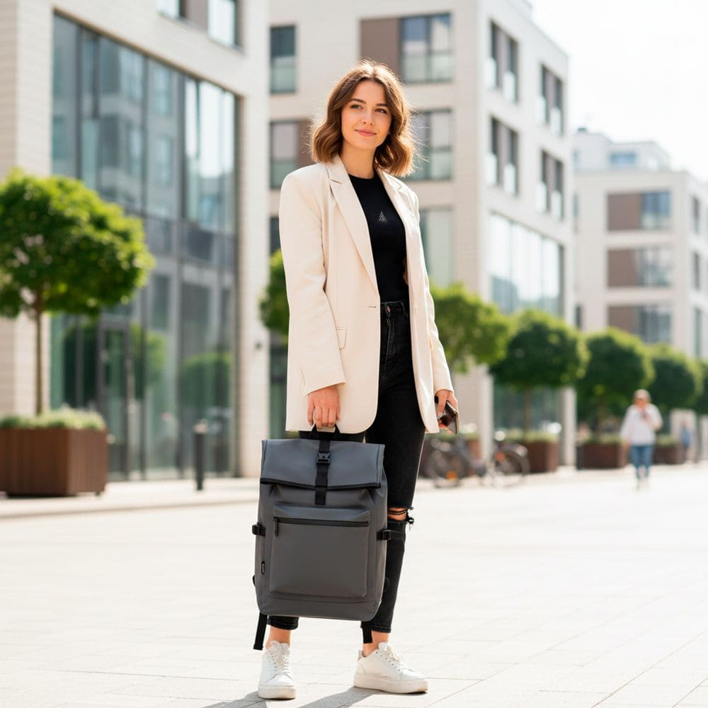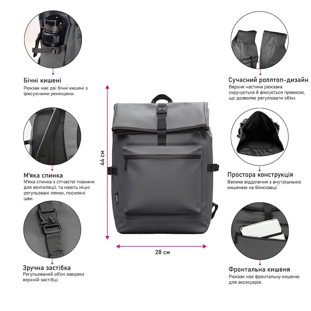 Міський роллтоп-рюкзак Nikibo Trekker поєднує лаконічний дизайн і багатофункціональність, роблячи його зручним вибором для навчання, роботи та подорожей. Виготовлений із щільного водовідштовхувального поліестеру, він надійно захищає речі від вологи та зношування. Усередині розташоване велике відділення з м’якою кишенею для ноутбука до 16", є внутрішня кишеня на блискавці, фронтальна кишеня для аксесуарів і дві бічні кишені з ремінцями. Роллтоп-конструкція дозволяє регулювати об’єм: верхня частина скручується та фіксується пряжкою. Для комфорту під час носіння передбачена м’яка сітчаста спинка з вентиляцією та регульовані лямки з посиленими швами. Характеристики: розмір 28×14×44 см, об’єм 17 л, вага 570 г. Логотип компанії можна нанести методами шовкотрафарету, термоперенесення чи вишивки, перетворивши рюкзак на сучасний корпоративний подарунок.