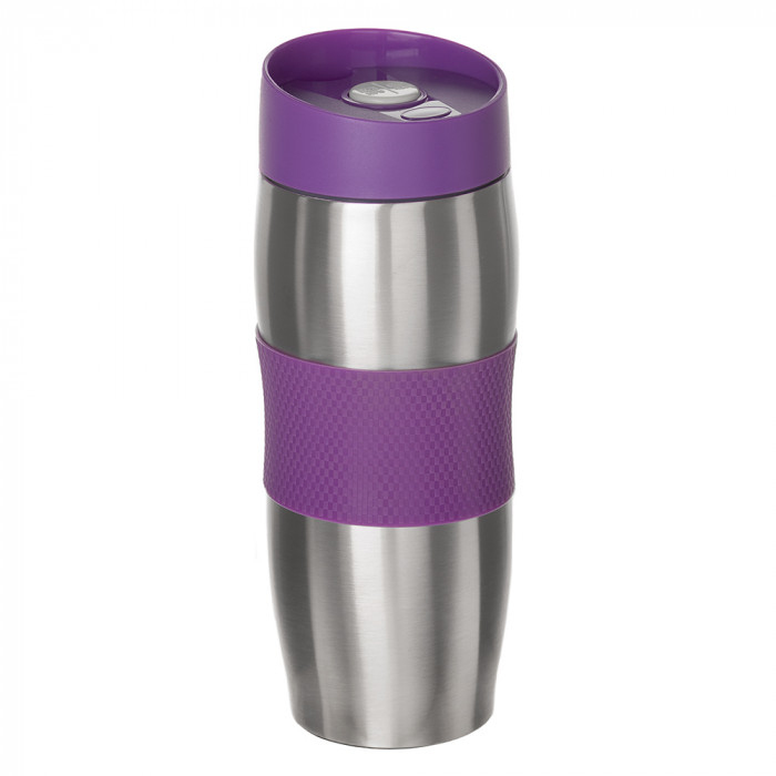 Термокухоль поєднує в собі два матеріали. Основа зроблена з нержавіючої сталі, яка відрізняється міцністю та стійкістю зносу. Посередині є силіконова вставка для зручності тримання в річці. Зовнішня сторона кришки також зроблена силіконовою для зручності пиття. Виріб герметичний, відкривається за допомогою спеціальної кнопки. Об'єм 380 мл. Представлено у чотирьох кольорах. На металевій основі за допомогою лазерного гравіювання можна додатково нанести логотип, бренд, візерунок. Термокухоль з нанесенням можна використовувати як корпоративний подарунок або сувенір на різних промо заходах.